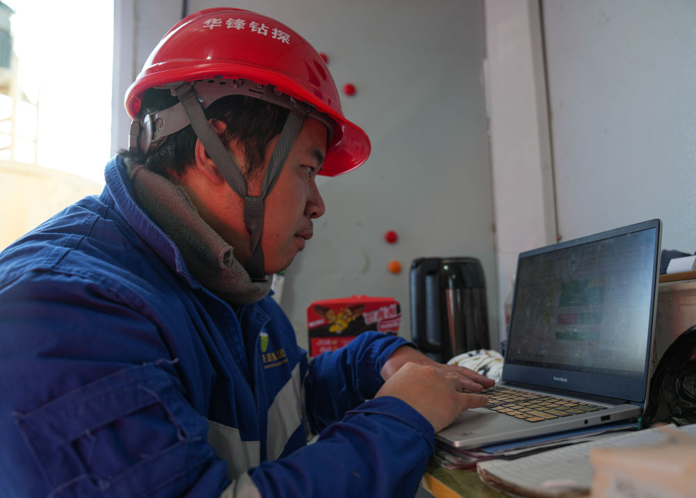 7月11日,操作班長彭銀平在操作鉆機(jī),準(zhǔn)備進(jìn)尺作業(yè)。新華社記者 晉美多吉 攝