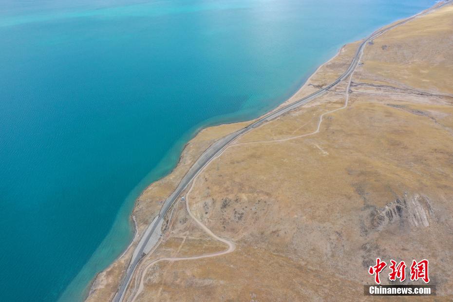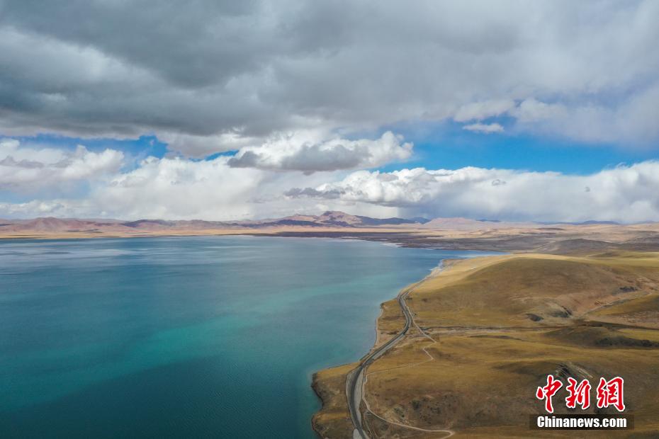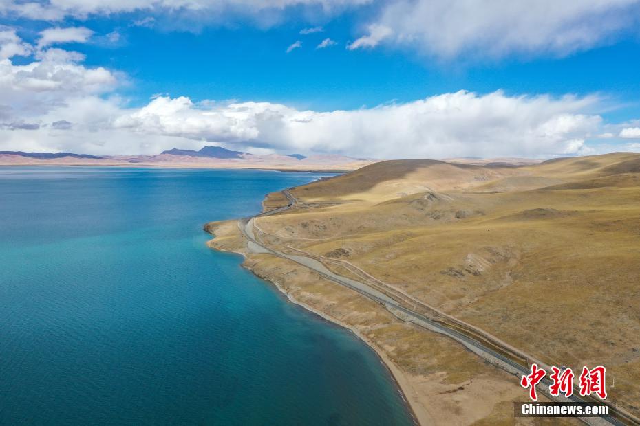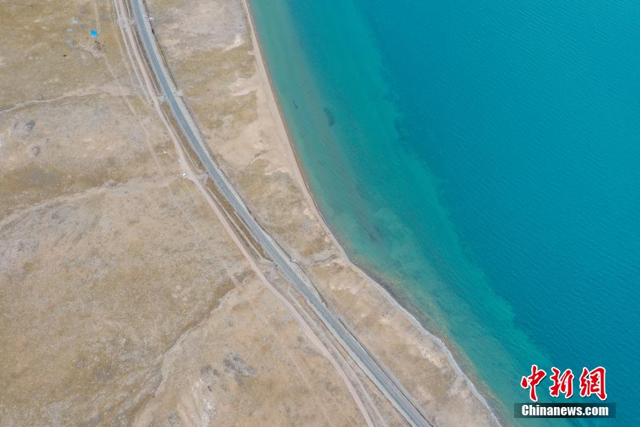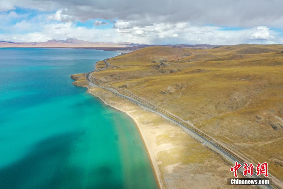 10月24日,鳥瞰深秋時節(jié)的錯那湖,美景如畫。錯那湖位于西藏自治區(qū)那曲市安多縣境內(nèi),是怒江的源頭湖。湖水在陽光的照耀下,波光粼粼,湖岸線蜿蜒曲折,與周圍的山脈、鐵路、草原共同描繪出一幅美麗的畫卷。中新社記者 貢嘎來松 攝
