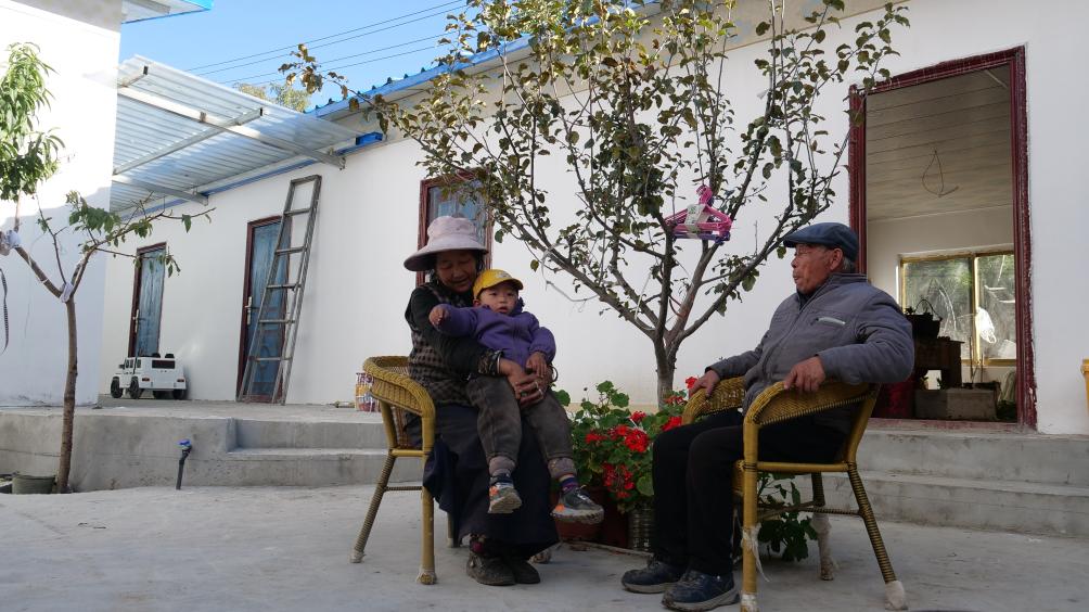 10月21日,賈永明(右)與瓊國逗弄外孫。新華社記者魏冠宇 攝