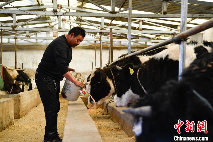 圖為村民強(qiáng)巴旦達(dá)在喂牛。趙朗 攝