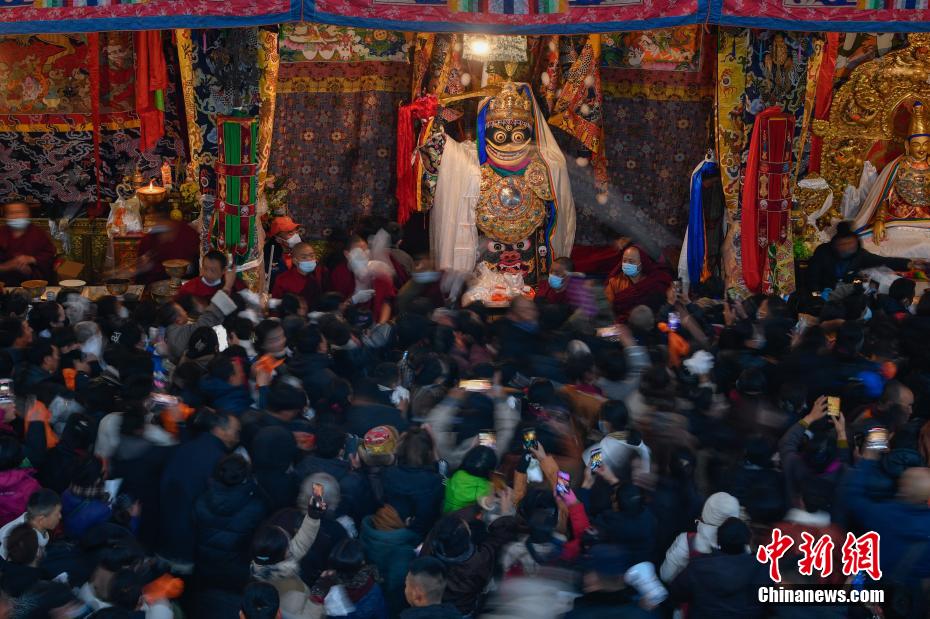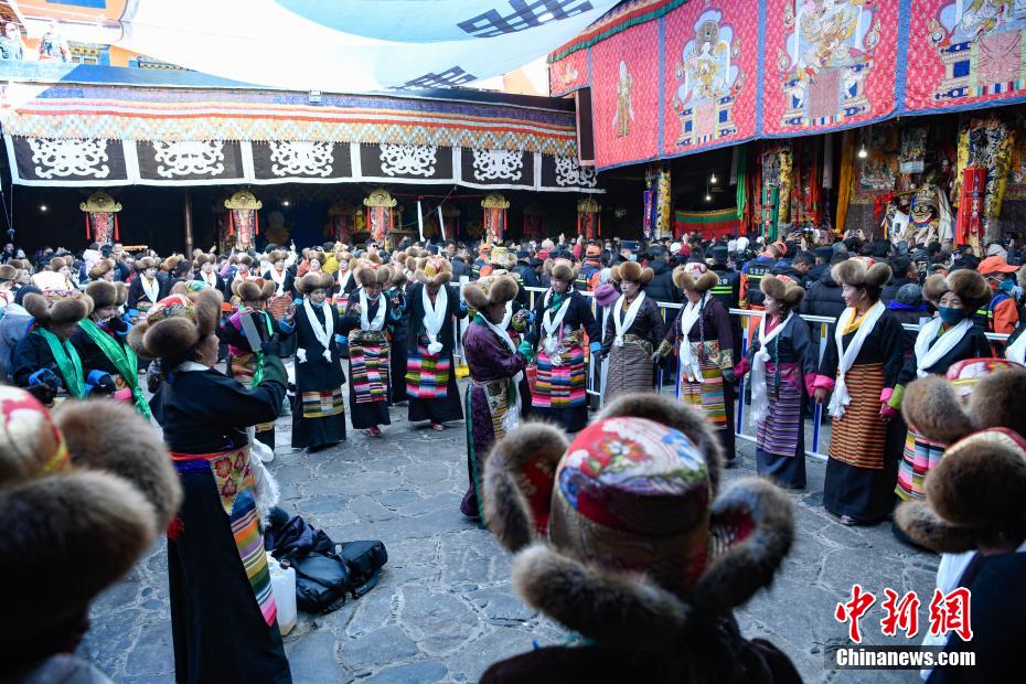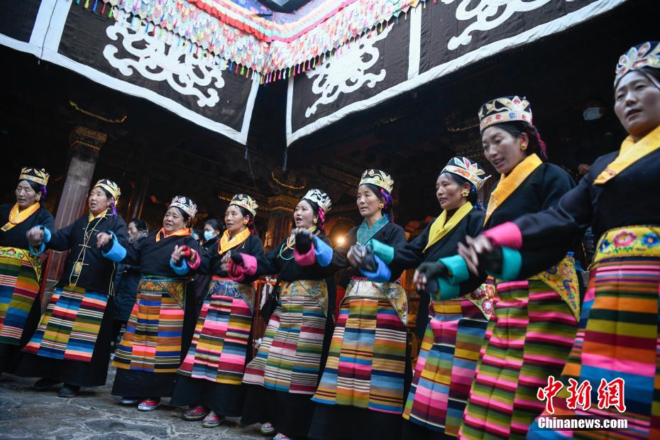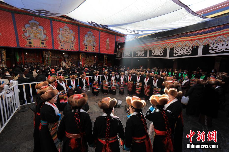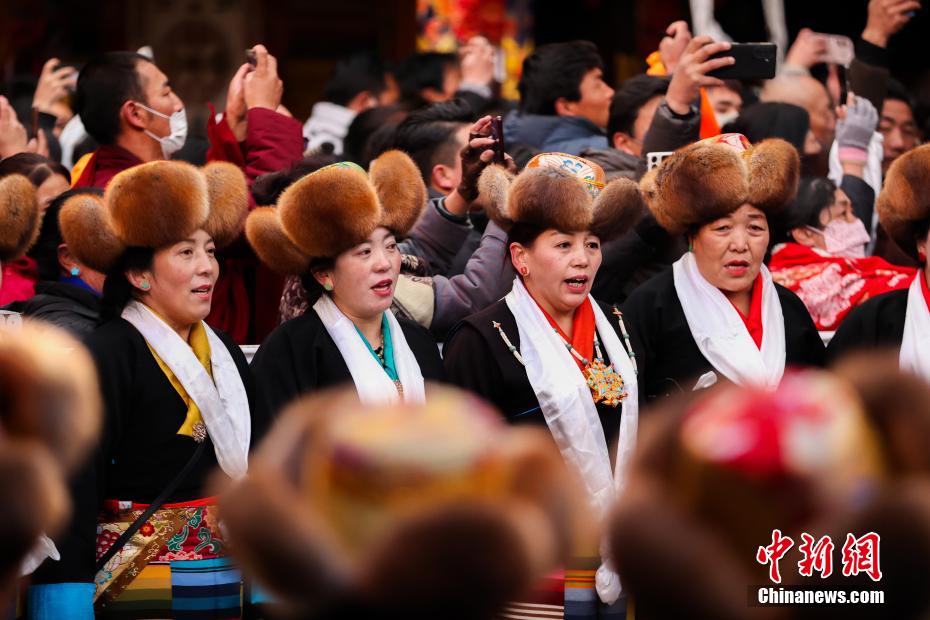 12月15日即藏歷十月十五日是藏族傳統(tǒng)的節(jié)日“白來(lái)日追”,俗稱“仙女節(jié)”、“白拉姆節(jié)”等。相傳藏傳佛教最高護(hù)法神之一班丹拉姆的女兒白拉姆,不顧母親的反對(duì)與赤尊贊私定終身,班丹拉姆一怒之下將赤尊贊趕到拉薩河南岸,規(guī)定二人僅每年的藏歷十月十五日相見(jiàn)。圖為身著民族服裝的信眾在大昭寺內(nèi)載歌載舞。