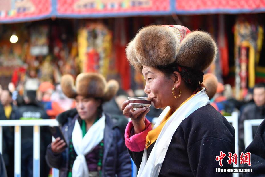 12月15日即藏歷十月十五日是藏族傳統(tǒng)的節(jié)日“白來(lái)日追”,俗稱“仙女節(jié)”、“白拉姆節(jié)”等。相傳藏傳佛教最高護(hù)法神之一班丹拉姆的女兒白拉姆,不顧母親的反對(duì)與赤尊贊私定終身,班丹拉姆一怒之下將赤尊贊趕到拉薩河南岸,規(guī)定二人僅每年的藏歷十月十五日相見(jiàn)。圖為一位藏族婦女品嘗青稞酒。