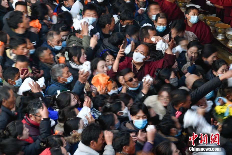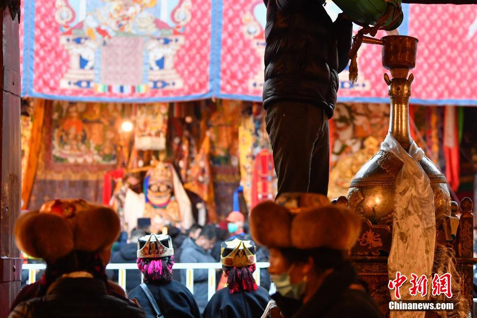 12月15日即藏歷十月十五日是藏族傳統(tǒng)的節(jié)日“白來(lái)日追”,俗稱“仙女節(jié)”、“白拉姆節(jié)”等。相傳藏傳佛教最高護(hù)法神之一班丹拉姆的女兒白拉姆,不顧母親的反對(duì)與赤尊贊私定終身,班丹拉姆一怒之下將赤尊贊趕到拉薩河南岸,規(guī)定二人僅每年的藏歷十月十五日相見(jiàn)。圖為工作人員將青稞酒倒入女神白拉姆像前的酒壇。