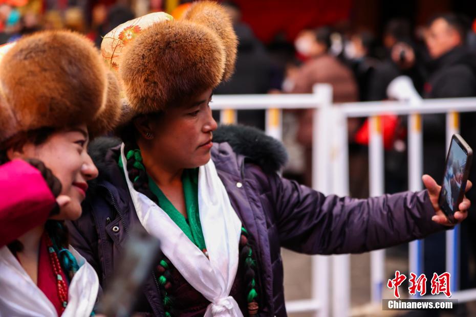 12月15日即藏歷十月十五日是藏族傳統(tǒng)的節(jié)日“白來(lái)日追”,俗稱“仙女節(jié)”、“白拉姆節(jié)”等。相傳藏傳佛教最高護(hù)法神之一班丹拉姆的女兒白拉姆,不顧母親的反對(duì)與赤尊贊私定終身,班丹拉姆一怒之下將赤尊贊趕到拉薩河南岸,規(guī)定二人僅每年的藏歷十月十五日相見(jiàn)。圖為信眾在大昭寺自拍留念。