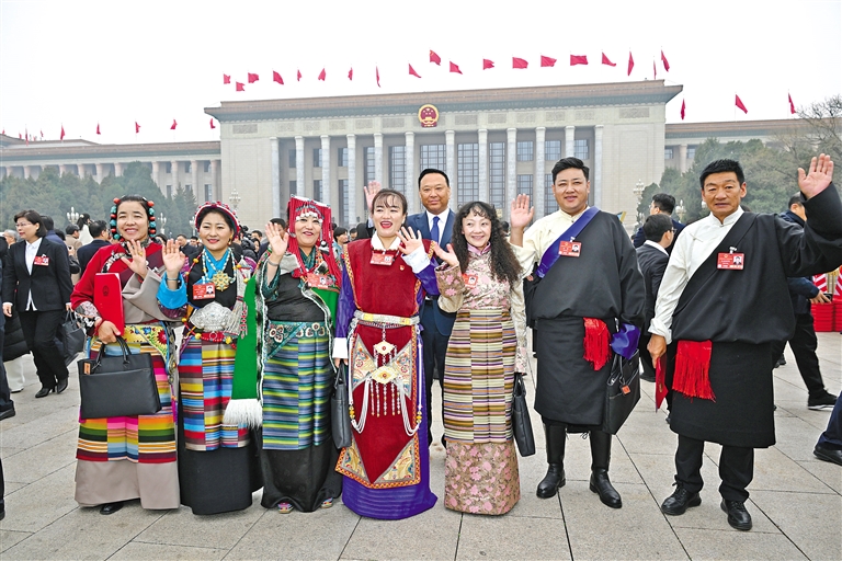 圖為閉幕會(huì)結(jié)束后,西藏全國人大代表信心滿懷走出會(huì)場(chǎng)。記者 旦增西旦 攝