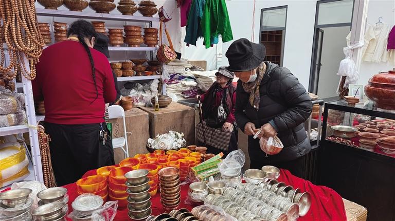 參展商們也在最后一天全力沖刺,來自不同地域、經(jīng)營不同品類商品的商家在展會上均收獲頗豐。來自尼泊爾的新白瑪塔西綜合商店老板拉魯,此次展銷會帶來了木碗、玉碗、銅碗等二十多類特色產(chǎn)品。他笑著表示:“銷量挺不錯的,我們家的產(chǎn)品不僅品類豐富,價格也實惠。這已經(jīng)是我第八次來拉薩參加展銷會了,每次都能感受到拉薩消費者的熱情,也收獲滿滿。”