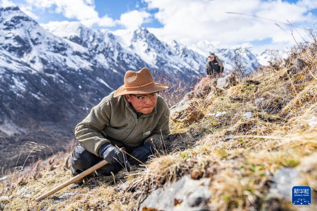 在那曲市索縣西昌鄉(xiāng),牧民在尋覓蟲草(5月18日攝)。新華社記者 丁增尼達(dá) 攝