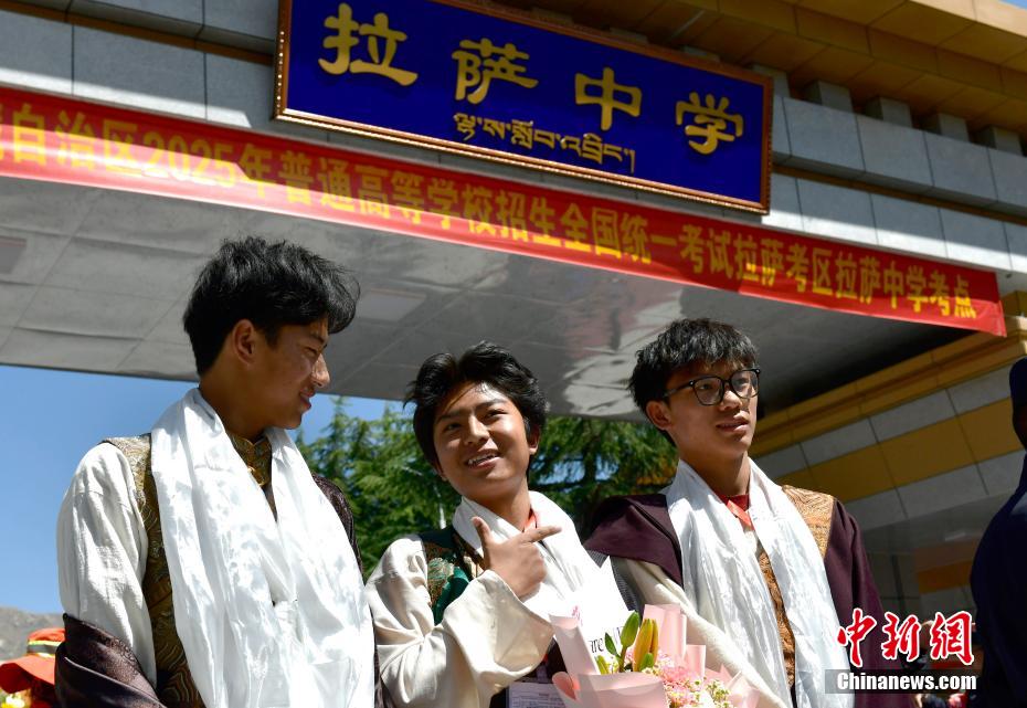 6月9日上午11時30分,西藏自治區(qū)2025年普通高考完成所有科目考試。圖為結(jié)束考試的考生們在拉薩市拉薩中學考點外留影。中新社記者 李林 攝