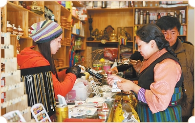 游客在吉隆鎮(zhèn)吉甫村購買當?shù)靥厣唐?。拉巴宗吉攝