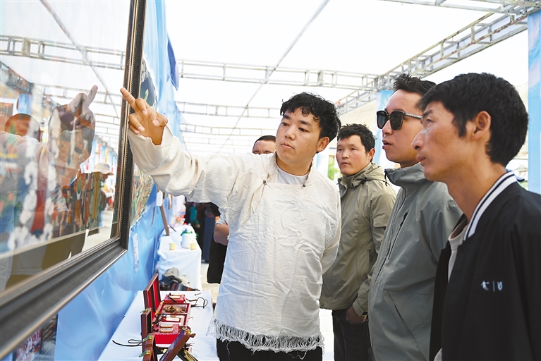 在欣賞視聽盛宴的同時(shí),國家級非遺項(xiàng)目江孜卡墊織造技藝、自治區(qū)級非遺項(xiàng)目牛村陶器制作技藝、市級非遺項(xiàng)目恰哇編織技藝等50個(gè)非遺項(xiàng)目,以及民族手工業(yè)產(chǎn)品、南木林縣縣級非遺產(chǎn)品集中展覽展銷,備受消費(fèi)者青睞。各非遺產(chǎn)品展銷點(diǎn)收入不斷、訂單不斷,經(jīng)初步統(tǒng)計(jì),活動現(xiàn)場非遺產(chǎn)品銷售總額達(dá)45萬余元。