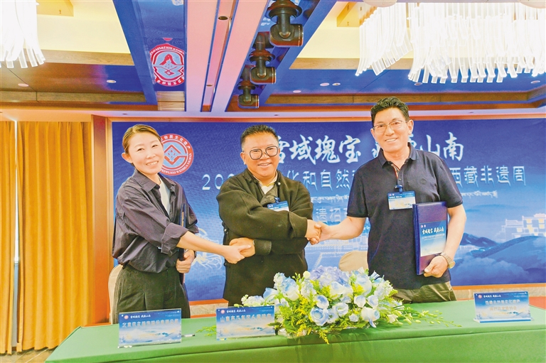 在全區(qū)非遺招商引資及項(xiàng)目簽約會(huì)上,4家企業(yè)負(fù)責(zé)人分別介紹公司發(fā)展歷程、市場(chǎng)前景、合作意向、未來計(jì)劃等情況。乃東區(qū)人民政府、乃東區(qū)文化和旅游局、西藏卓番林文化有限公司、北京依文服飾股份有限公司等一同簽訂了項(xiàng)目合作協(xié)議。
