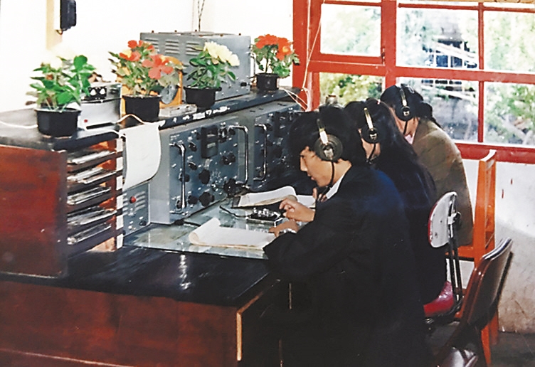 20世紀(jì)70-80年代業(yè)務(wù)人員通過(guò)莫爾斯電臺(tái)傳輸氣象資料。昌都市氣象局供圖