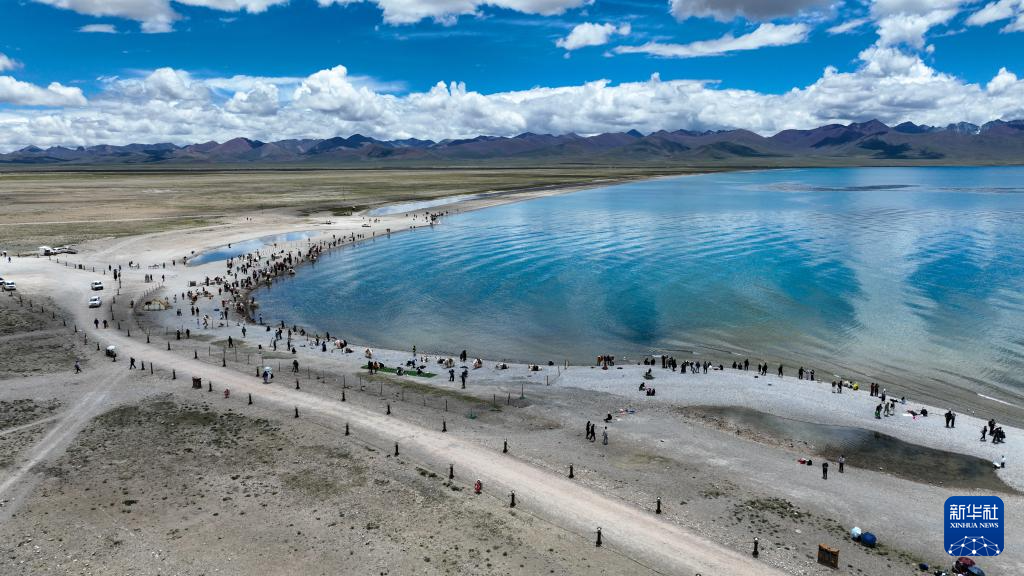 7月16日,在西藏拉薩市當(dāng)雄縣納木錯扎西島景區(qū),來自世界各地的游客享受著夏日納木錯清爽的風(fēng)。納木錯湖面海拔4718米,是世界上面積超過1000平方公里的湖泊中海拔最高的湖泊。2024年,納木錯扎西島景區(qū)接待游客約40萬人次。