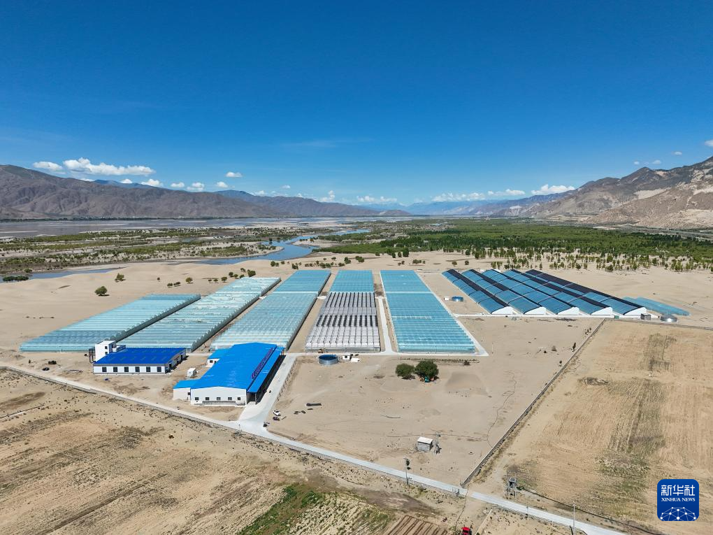 這是建立在西藏山南市扎囊縣阿扎鄉(xiāng)沙化地上的西藏綠之源現(xiàn)代農(nóng)業(yè)科技股份有限公司的果蔬大棚,該公司收購當(dāng)?shù)嘏Q蚣S,腐熟后加入有機(jī)肥來改良沙化地,利用現(xiàn)代農(nóng)業(yè)設(shè)施和科學(xué)管培技術(shù)保障有機(jī)種植的可持續(xù)性發(fā)展(無人機(jī)照片,7月19日攝)。新華社記者 李鑫 攝