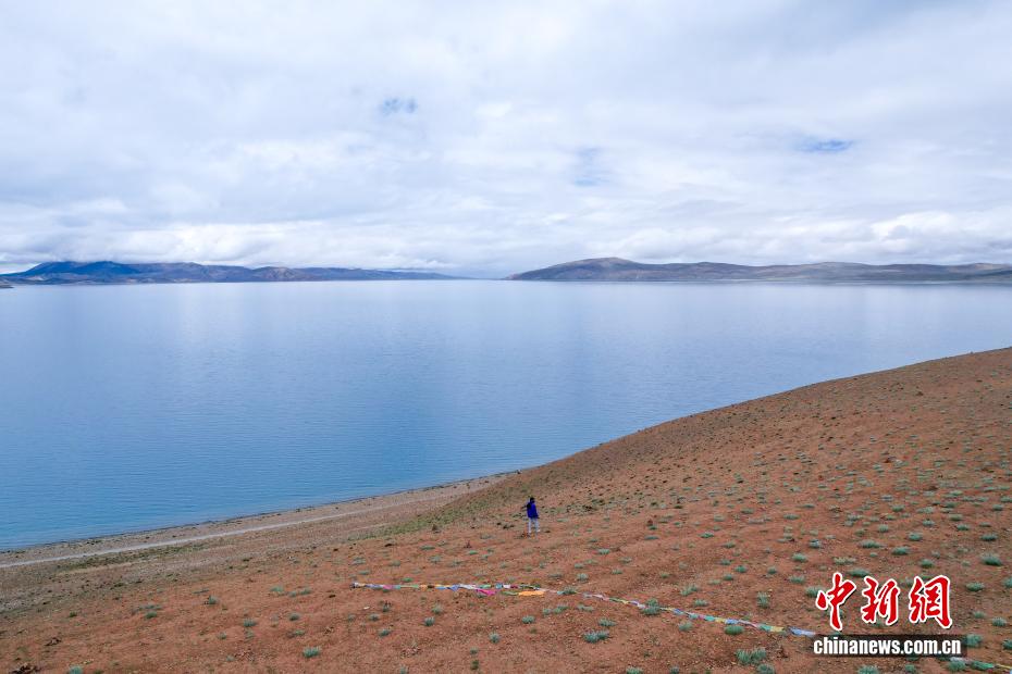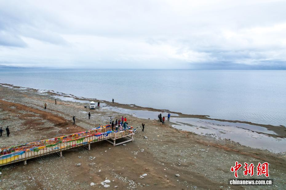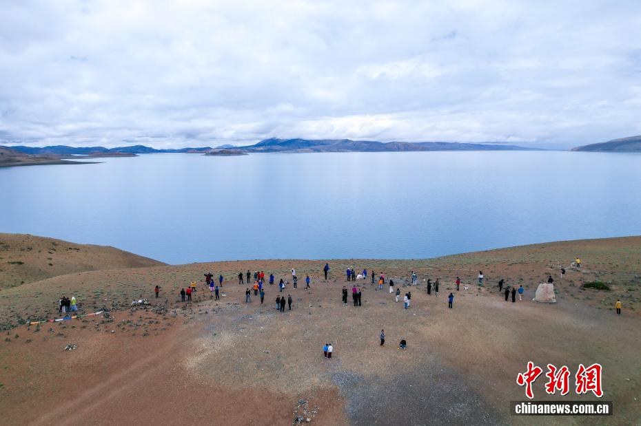 7月22日,游客游覽瑪旁雍錯(cuò)?,斉杂哄e(cuò)與拉昂錯(cuò)位于西藏阿里地區(qū)普蘭縣境內(nèi),兩湖僅有一堤之隔,卻擁有不同的地理特征和咸淡水之分,因而分別被譽(yù)為“圣湖”與“鬼湖”。每年夏天,兩湖與附近的岡仁波齊一道,吸引眾多游客前來賞景游覽。(無人機(jī)照片)中新社記者 張祥毅 攝