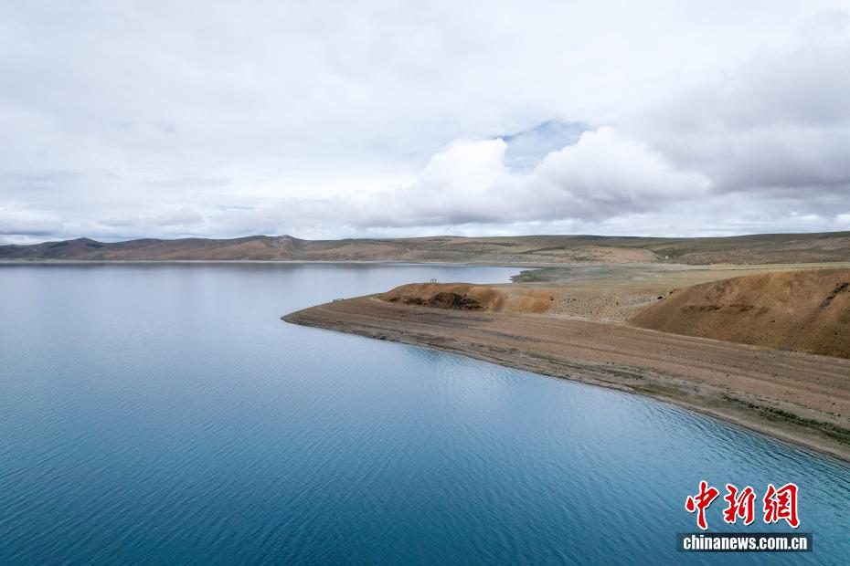 7月22日,航拍拉昂錯(cuò)夏日風(fēng)光?,斉杂哄e(cuò)與拉昂錯(cuò)位于西藏阿里地區(qū)普蘭縣境內(nèi),兩湖僅有一堤之隔,卻擁有不同的地理特征和咸淡水之分,因而分別被譽(yù)為“圣湖”與“鬼湖”。(無人機(jī)照片)中新社記者 張祥毅 攝