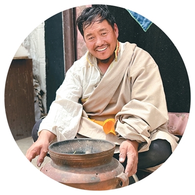 剛開始學(xué)習(xí)這門技藝,我就跟著舅舅爬上村旁海拔4000多米的山頂。只有那里,才有我們需要的優(yōu)質(zhì)黏土。舅舅告訴我:“桑珠,這黏土啊,是陶器的命根子。山頂?shù)耐磷罴毮仯ば宰?,像揉好的面團一樣柔韌,可塑性最強。”我從取土開始,一點一點地學(xué)習(xí)。慢慢地,泥土在我手里聽話了,碗、罐、壺……這些實用又好看的陶器雛形,逐漸在我手中誕生。