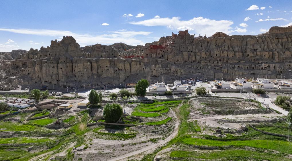 俯瞰皮央石窟群(無人機(jī)照片)。新華社記者 丁增尼達(dá) 攝