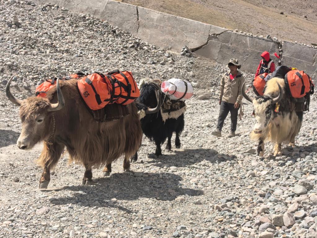 在徒步路線的起點(diǎn)廣場(chǎng)上,一隊(duì)隊(duì)牦牛隊(duì)整裝待發(fā),游客的行李正被穩(wěn)穩(wěn)地放上牛背。不少外籍游客雇傭本地牧民,利用牦牛馱運(yùn)行李并提供向?qū)Х?wù)。陳賢剛介紹,旅游業(yè)已成為巴嘎鎮(zhèn)經(jīng)濟(jì)的主導(dǎo)產(chǎn)業(yè),當(dāng)?shù)鼐用袷杖胫屑s一半來自旅游相關(guān)工作。