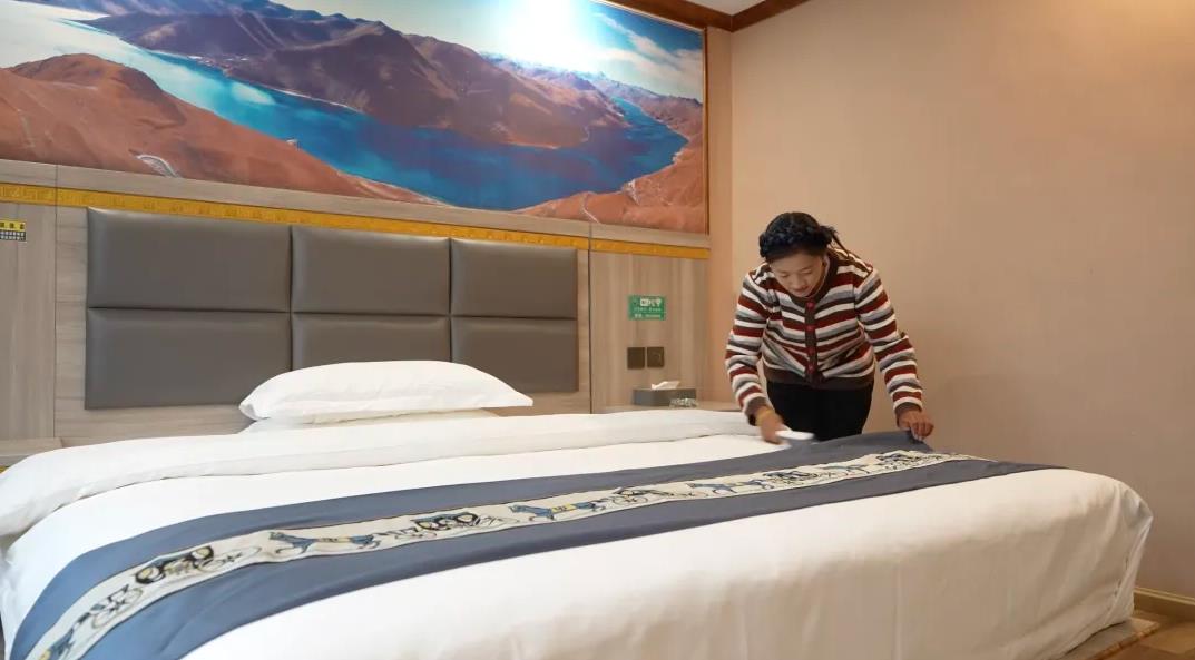 “以前全家靠放牧和種青稞過(guò)活,風(fēng)里來(lái)雨里去,一年攢不下幾個(gè)錢。現(xiàn)在開了這家藏式餐館,游客多的時(shí)候一天能接待上百桌,收入很好?!痹谠髯诖褰?jīng)營(yíng)餐飲的次央說(shuō)。