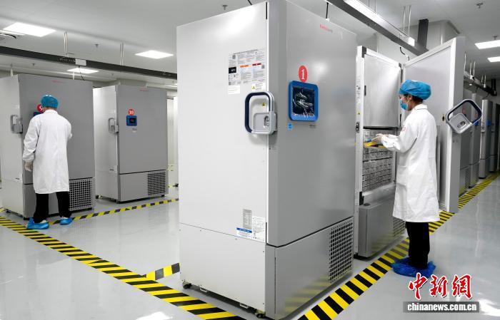 圖為工作人員把樣本處理完后放入超低溫冰箱。李林 攝
