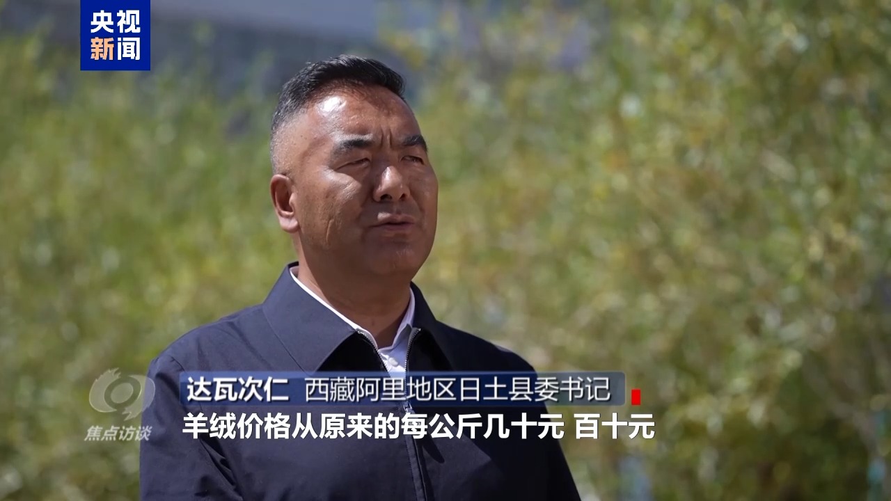 西藏阿里地區(qū)日土縣委書記 達(dá)瓦次仁:羊絨價格從原來的每公斤幾十元、百十元基本現(xiàn)在穩(wěn)定到了三百多元每公斤。