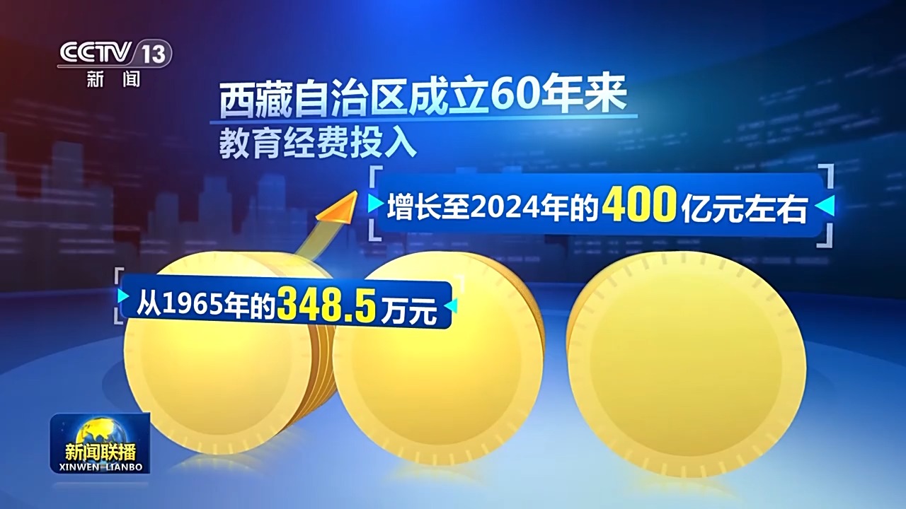 西藏自治區(qū)成立60年來,教育經費投入從1965年的348.5萬元增長至2024年的400億元左右。從2012年開始,西藏在全國率先建立從學前到高中的15年公費教育體系。如今的西藏,已建成涵蓋學前教育、基礎教育、職業(yè)教育、高等教育等完整的現(xiàn)代教育體系。從文盲率高達95%以上,到如今的新增勞動力平均受教育年限達13.1年,西藏教育實現(xiàn)了“歷史性跨越”。