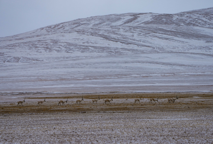 生活在三江源國家公園(唐北區(qū)域)的藏羚羊(2025年2月1日攝)。新華社記者 儲國強(qiáng) 攝