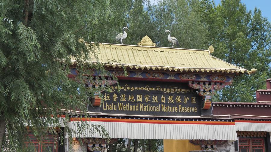 綠樹(shù)掩映下的拉魯濕地國(guó)家級(jí)自然保護(hù)區(qū)南門。新華社記者 黃智琪 攝