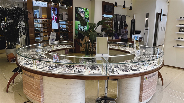 在南樓一層,瑞幸咖啡的藍(lán)色招牌與霸王茶姬的紅色燈籠相映成趣,構(gòu)筑起高原最強(qiáng)的咖啡茶飲矩陣。澳免國際美妝區(qū)內(nèi),蘭蔻、雅詩蘭黛等全球品牌專柜整齊陳列,產(chǎn)品與區(qū)外同步上新且價(jià)格一致。明廊永視眼鏡店的乳白色柜臺前,驗(yàn)光設(shè)備閃爍著科技微光,負(fù)責(zé)人彭春永介紹:“升級后加裝了藏式紋樣屏風(fēng),自動門和LED屏讓老店煥發(fā)新顏。”