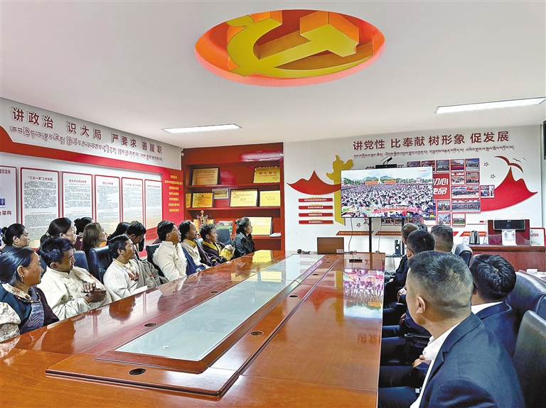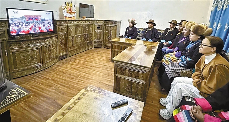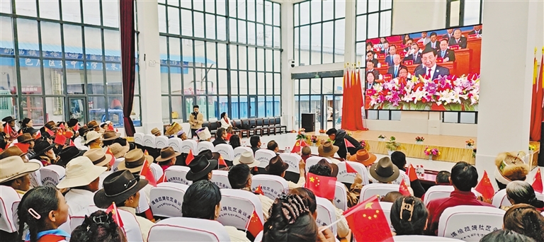 日喀則市謝通門(mén)縣仁欽則鄉(xiāng)倫珠孜村的村民們集中觀看了現(xiàn)場(chǎng)直播,現(xiàn)場(chǎng)不時(shí)傳出熱烈掌聲。老黨員仁增多吉感慨萬(wàn)千:“我深切體會(huì)到了沒(méi)有中國(guó)共產(chǎn)黨就沒(méi)有社會(huì)主義新西藏,就沒(méi)有我們今天的幸福生活。我將始終維護(hù)祖國(guó)統(tǒng)一,加強(qiáng)民族團(tuán)結(jié),堅(jiān)定不移聽(tīng)黨話(huà)、矢志不渝跟黨走?!?/p>
