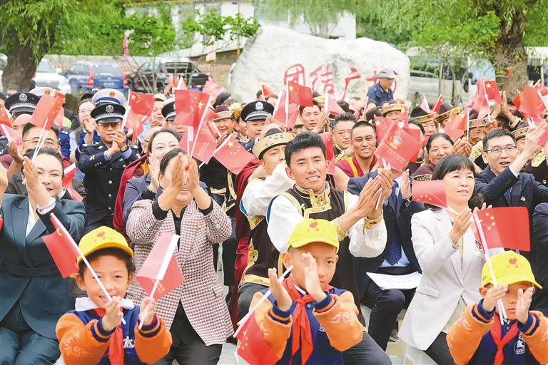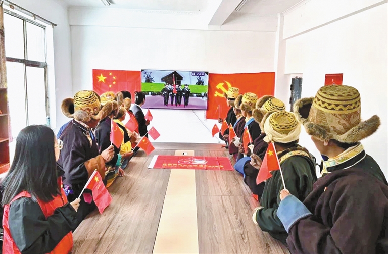 山南市隆子縣玉麥鄉(xiāng)干部群眾、派出所民警等來(lái)到愛(ài)國(guó)守邊先進(jìn)事跡展館,集中收聽(tīng)收看了慶祝大會(huì)直播。玉麥村的大學(xué)生尼瑪次仁說(shuō):“當(dāng)看到山南彩車(chē)上‘家是玉麥,國(guó)是中國(guó)’的標(biāo)語(yǔ)時(shí),我感到非常驕傲與自豪。作為新時(shí)代青年,我要傳承好發(fā)揚(yáng)好愛(ài)國(guó)守邊精神,時(shí)刻準(zhǔn)備著到祖國(guó)和人民最需要的地方去?!?/p>