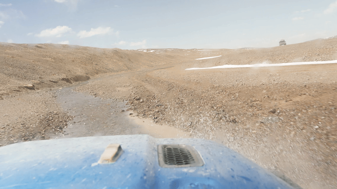 路面逐漸從“蜿蜒崎嶇的溪流”變成“波濤洶涌的大?!?,越野車(chē)?yán)锖孟褚粋€(gè)迪斯科舞池,每件東西都像被賦予了生命一般蹦蹦跳跳,伴隨著我們這些乘客的驚呼,連同引擎的轟鳴一起,被揉碎在無(wú)邊荒原的呼嘯風(fēng)聲中。
