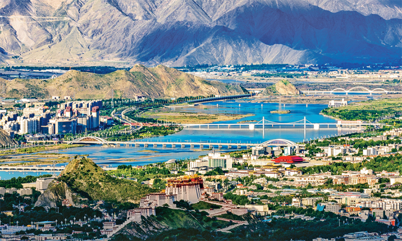 黨的十八大以來,在以習(xí)近平同志為核心的黨中央堅(jiān)強(qiáng)領(lǐng)導(dǎo)下,在全國(guó)人民大力支持下,西藏各族干部群眾團(tuán)結(jié)一心、艱苦奮斗,解決了許多長(zhǎng)期想解決而沒有解決的難題,辦成了許多過去想辦而沒有辦成的大事,各項(xiàng)事業(yè)取得全方位進(jìn)步、歷史性成就,社會(huì)主義現(xiàn)代化新西藏建設(shè)邁出堅(jiān)實(shí)步伐。西藏脫貧攻堅(jiān)全面勝利,同全國(guó)人民一道實(shí)現(xiàn)全面小康。經(jīng)濟(jì)發(fā)展水平不斷提升,2024年,西藏地區(qū)生產(chǎn)總值達(dá)到2765億元,按不變價(jià)格計(jì)算,是1965年的155倍,年均增長(zhǎng)8.9%;地方財(cái)政收入達(dá)到277億元,是1965年的1258倍,年均增長(zhǎng)12.9%?;A(chǔ)設(shè)施體系不斷完善,全區(qū)公路總里程達(dá)到12.49萬公里,川藏鐵路全線開工,拉日、拉林鐵路建成投運(yùn),“復(fù)興號(hào)”飛馳雪域高原,青藏聯(lián)網(wǎng)、川藏聯(lián)網(wǎng)、藏中聯(lián)網(wǎng)、阿里電網(wǎng)聯(lián)網(wǎng)等4條電力天路相繼建成,主電網(wǎng)覆蓋所有縣(市、區(qū))。人民生活水平顯著提高,2024年農(nóng)村居民人均可支配收入突破2萬元,醫(yī)療教育事業(yè)突飛猛進(jìn),新增勞動(dòng)力平均受教育年限達(dá)到13.1年,人均預(yù)期壽命由20世紀(jì)50年代的35.5歲增加到72.5歲;文化事業(yè)繁榮發(fā)展,優(yōu)秀民族傳統(tǒng)文化得到傳承和發(fā)展。生態(tài)文明建設(shè)持續(xù)加強(qiáng),實(shí)行最嚴(yán)格的生態(tài)環(huán)境保護(hù)制度,全區(qū)50%以上的國(guó)土納入生態(tài)保護(hù)紅線,2024年環(huán)境空氣質(zhì)量?jī)?yōu)良天數(shù)比例達(dá)99.7%,主要江河湖泊水質(zhì)100%達(dá)到或優(yōu)于Ⅲ類水體。民族宗教政策全面落實(shí),少數(shù)民族干部茁壯成長(zhǎng),平等團(tuán)結(jié)互助和諧的社會(huì)主義民族關(guān)系日益深化,群眾的宗教信仰自由得到充分尊重和保護(hù)。今天的西藏,社會(huì)穩(wěn)定、經(jīng)濟(jì)發(fā)展、民族團(tuán)結(jié)、宗教和睦、生態(tài)良好、邊防鞏固、人民安居樂業(yè),步入發(fā)展最好、變化最大、各族群眾得實(shí)惠最多的歷史時(shí)期,社會(huì)主義現(xiàn)代化新西藏建設(shè)欣欣向榮、生機(jī)勃勃。