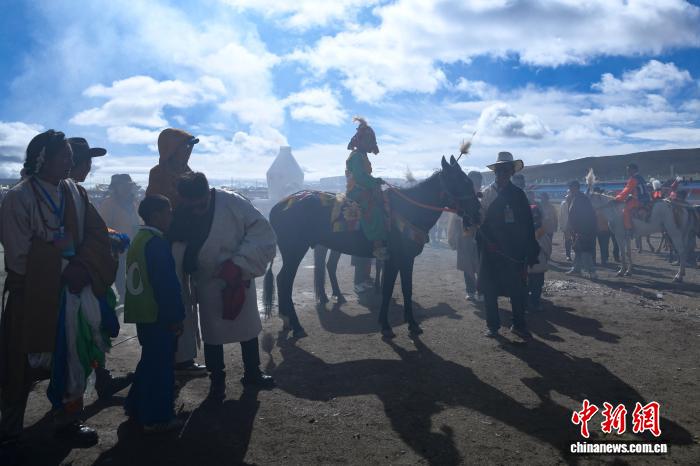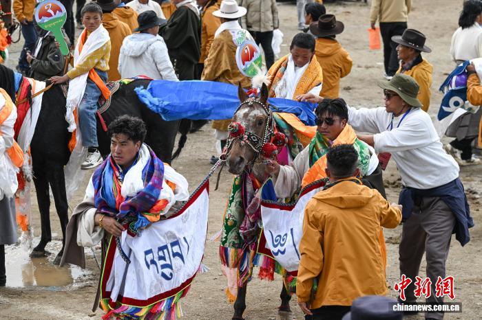 圖為參賽選手準備參加恰青賽馬節(jié)傳統(tǒng)大跑決賽。中新社記者 貢嘎來松 攝