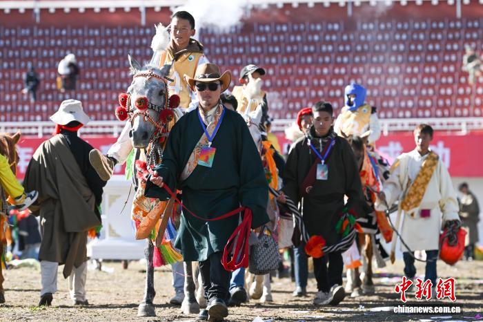 圖為恰青賽馬節(jié)傳統(tǒng)大跑決賽頒獎儀式現(xiàn)場。中新社記者 貢嘎來松 攝