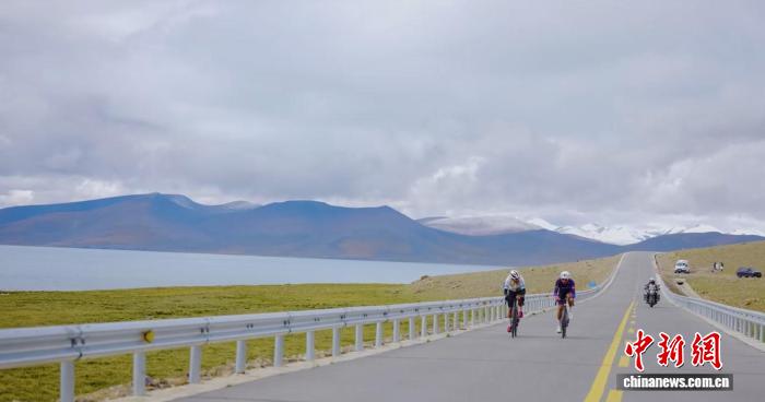 圖為9月7日,參賽選手在海拔超過(guò)5000米的西藏普莫雍措湖畔騎行。(浪卡子縣融媒體中心供圖)