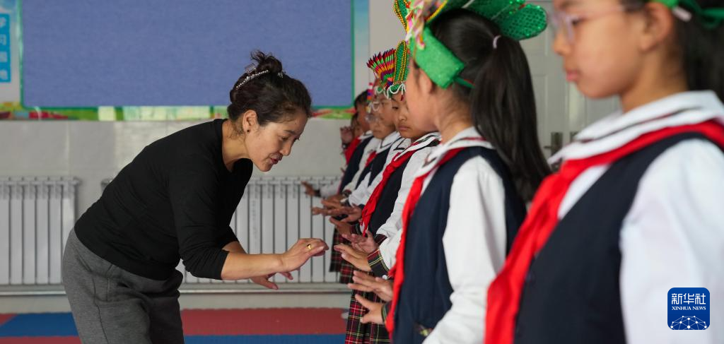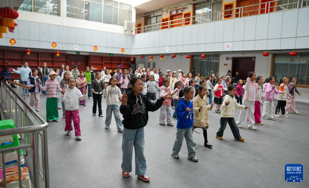 9月11日,在拉薩市實驗小學,藏戲老師指導孩子們練習藏戲身段動作。新華社記者 晉美多吉 攝