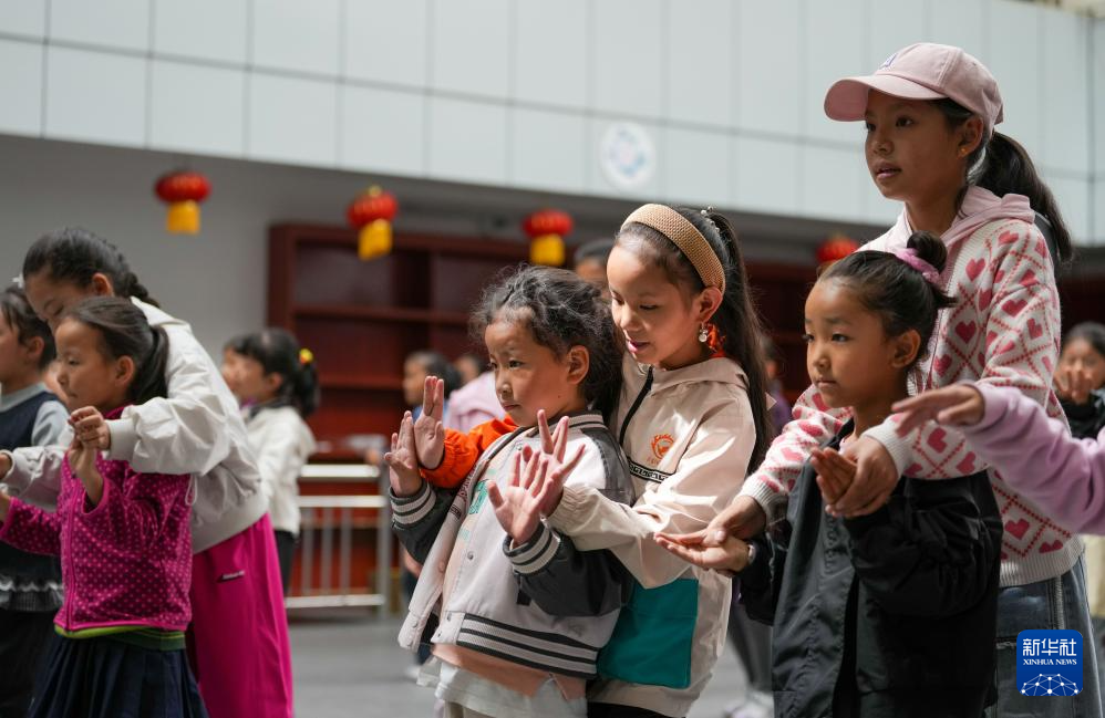 9月11日,在拉薩市實驗小學,孩子們在練習藏戲。新華社記者 晉美多吉 攝