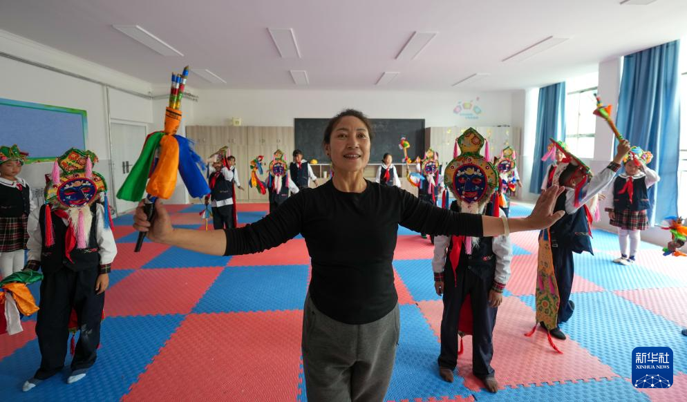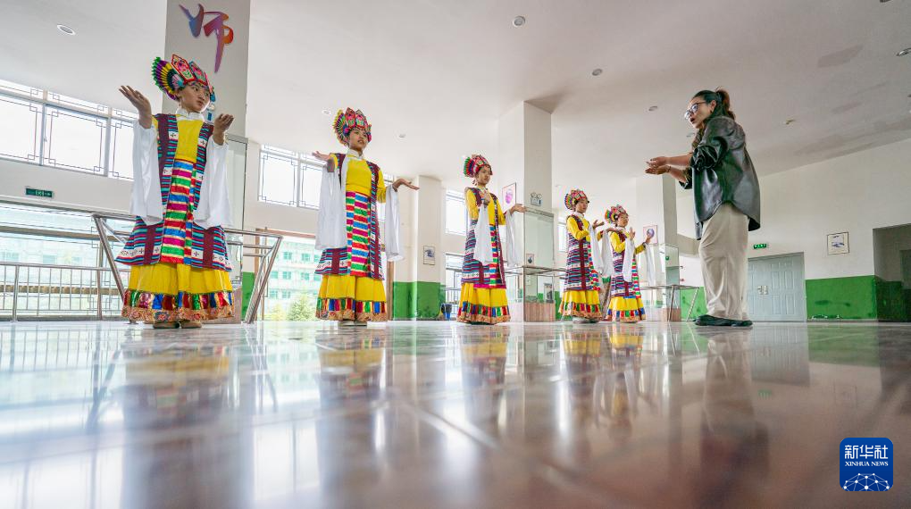 9月11日,在拉薩市實驗小學,藏戲老師帶領(lǐng)孩子們練習藏戲。新華社記者 晉美多吉 攝