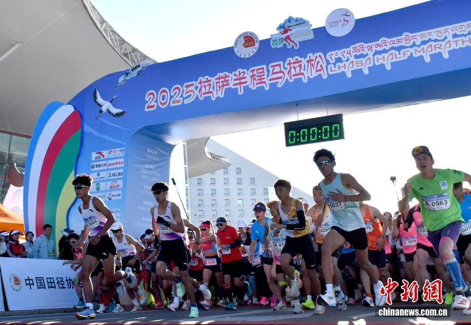 9月21日,2025拉薩半程馬拉松在西藏自治區(qū)會(huì)展中心鳴槍開跑。本次賽事設(shè)置半程馬拉松(21.0975公里)、競(jìng)速跑(10公里)和健康跑(5公里)三個(gè)組別,參賽規(guī)模7000人。圖為2025拉薩半程馬拉松鳴槍開跑。中新社記者 李林 攝