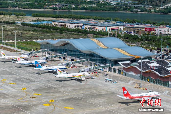2025年6月,西藏林芝米林機(jī)場停靠航班。該機(jī)場現(xiàn)運(yùn)營15條航線,通達(dá)北京、成都及廣州等9座城市。(中國民用航空西藏自治區(qū)管理局供圖)