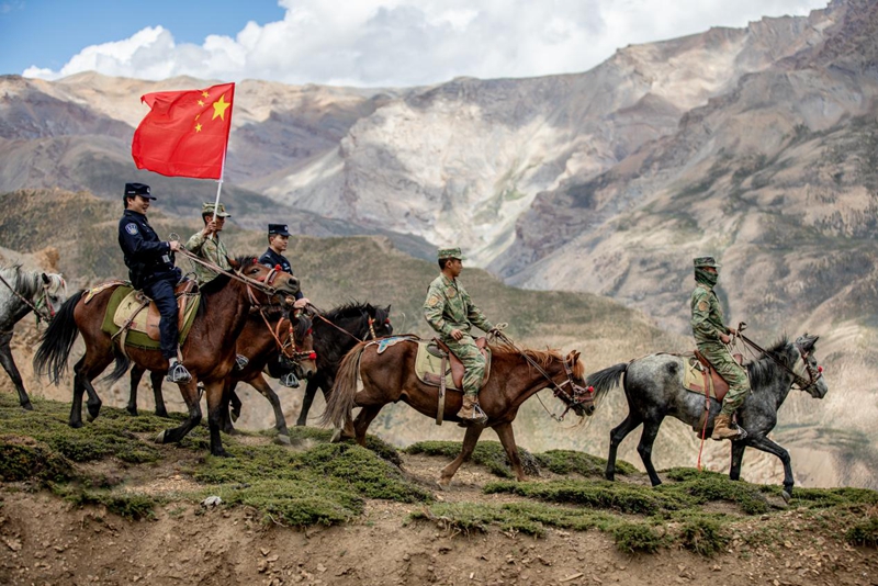 更艱險(xiǎn)的巡邊路,隱沒在海拔5000米的峭壁之上。民警、戰(zhàn)士與村民騎著馬,在絕壁間逶迤前行,落石與暗冰隨時(shí)可能出現(xiàn)。次仁多布杰輕撫馬鬃,聲音如雪山般沉穩(wěn):“我父親的父親的父親就在這里出生,這里必須有人守。我住,我的孩子也要?。∪魺o人守邊,何人護(hù)國(guó)?”作為受人尊敬的村醫(yī),他本可退休進(jìn)城,安享優(yōu)渥。但他依然選擇守護(hù)這片土地。