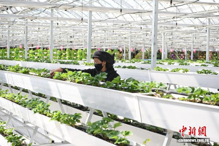 圖為當(dāng)?shù)毓と嗽谀窆たh現(xiàn)代化農(nóng)業(yè)示范園里工作。中新社記者 貢嘎來(lái)松 攝