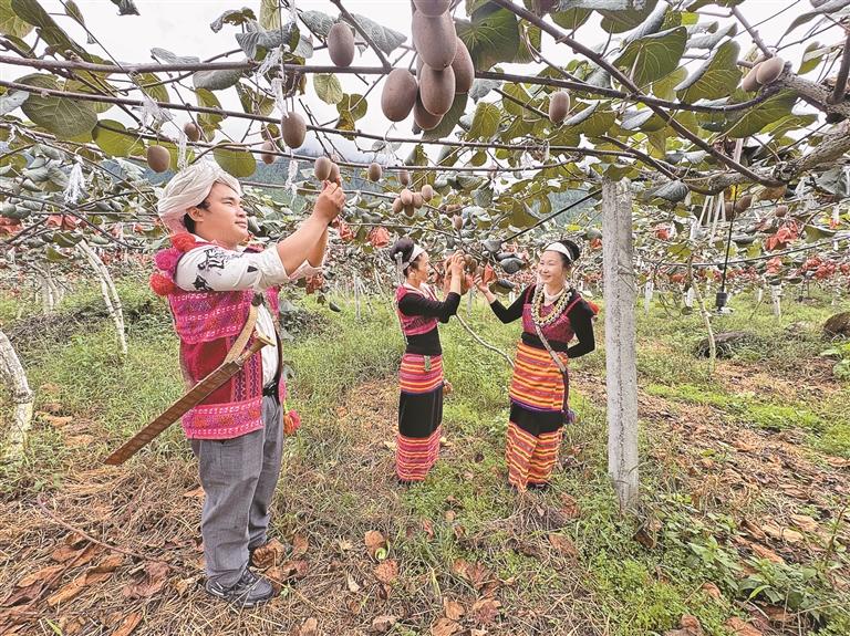 不僅如此,企業(yè)還定期請來農(nóng)業(yè)專家培訓(xùn),向村民傳授標(biāo)準(zhǔn)化種植技術(shù)。走進獼猴桃種植基地,正在疏果的村民依青向記者展示新學(xué)的技術(shù):“每株保留2到3個果最好,這樣成熟后的果子果形大、甜度高,價格自然也高。”她家去年跟著基地學(xué)種植,8畝獼猴桃收入5萬多元。以前只會種玉米的她,現(xiàn)在已經(jīng)成了村里的技術(shù)能手。