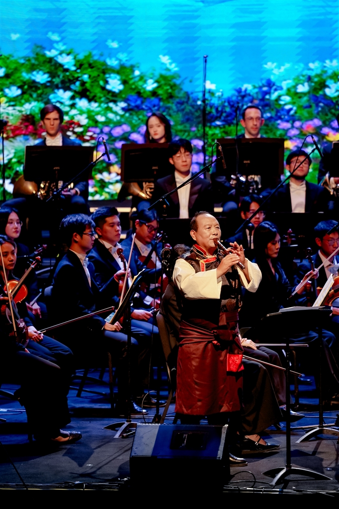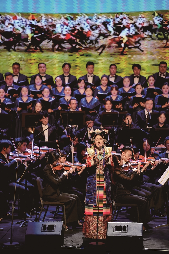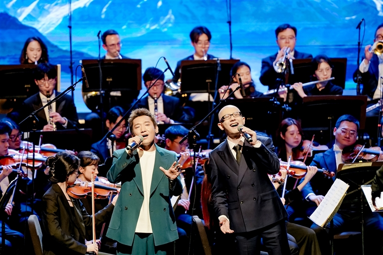 藝術(shù)形式的創(chuàng)新融合是本次音樂(lè)會(huì)的一大亮點(diǎn)。二重唱《茉莉與格?!穬?yōu)美詮釋了民族文化的交流共生;器樂(lè)演奏《“飛弦踏春”與“賽馬”》則讓著名二胡演奏家陳軍的激昂琴聲與扎念琴演奏員措姆的熱情彈奏展開對(duì)話,碰撞出令人振奮的藝術(shù)火花。從展現(xiàn)拉薩當(dāng)代生活的電視劇插曲《藍(lán)天上的云》,到描繪鄉(xiāng)村振興新貌的《童話里的格林村》,再到融合原生態(tài)山歌與專業(yè)唱法、曾為中央代表團(tuán)獻(xiàn)唱的《珠穆朗瑪》,一系列新創(chuàng)作品生動(dòng)展現(xiàn)了傳統(tǒng)與現(xiàn)代交織、充滿活力的社會(huì)主義新西藏。