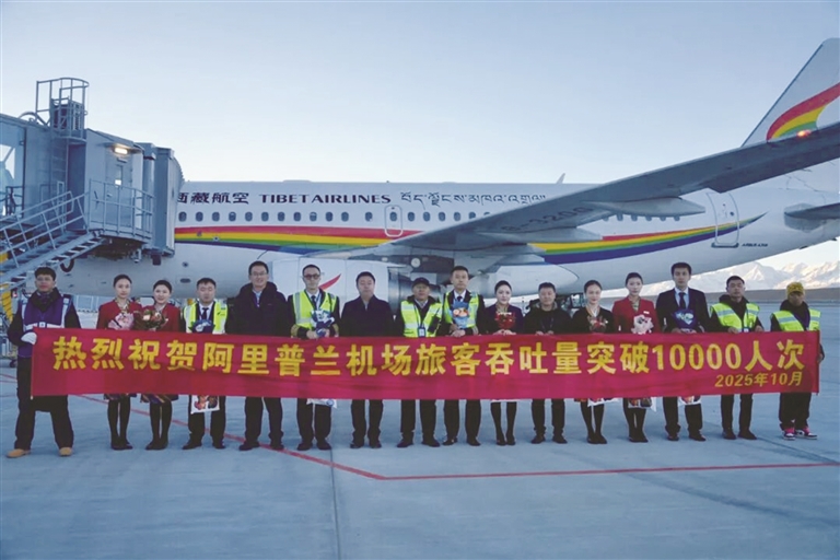 從“0”到“1000”再到“10000”,不僅僅是數(shù)字的增加,更是具體而鮮活的人間煙火、開放包容。在旅客構(gòu)成中,除公務(wù)商務(wù)人員外,本地居民出行、援藏干部家屬探親、外出就醫(yī)、求學(xué)的占比持續(xù)提升。來自陜西的援藏醫(yī)生平虎感慨道:“以前我們的病患和醫(yī)護(hù)人員,最怕的就是急癥和惡劣天氣。即便航班降落在阿里昆莎機(jī)場,對于急需通過航空轉(zhuǎn)運(yùn)至區(qū)外搶救的危重病人來說,從普蘭前往昆莎機(jī)場的那四個(gè)多小時(shí)路程就是一道難關(guān)?,F(xiàn)在飛機(jī)直抵普蘭,意味著‘最后一公里’的生命通道被徹底打通,為搶救贏得了寶貴的時(shí)間。”阿里普蘭機(jī)場的通航,精準(zhǔn)地切中了普蘭縣旅游資源豐富但受限于交通條件的核心痛點(diǎn)。它的核心價(jià)值在于將“流量”轉(zhuǎn)化為“留量”,助力普蘭縣構(gòu)建“快進(jìn)漫游”的旅游發(fā)展新格局。今年“十一”假日期間,機(jī)場創(chuàng)下單日旅客吞吐量179人次的最高紀(jì)錄。普蘭縣文化和旅游局副局長劉霖德介紹:“截至10月10日,全縣今年接待國內(nèi)外游客64.58萬人次,旅游收入8.45億元,同比分別增長24.28%和27.9%,進(jìn)一步印證了這條空中通道對‘一山一湖’旅游品牌的強(qiáng)大拉動效應(yīng)?!痹跅l件極端艱苦的高高原,機(jī)場從建設(shè)到穩(wěn)定運(yùn)營本身就是一項(xiàng)卓越成就。阿里普蘭機(jī)場干部董忠?guī)浾f道:“它地處‘一縣通三國’的咽喉要地,極大地提升了區(qū)域應(yīng)急響應(yīng)、物資投送與邊防巡控的能力,成為鞏固邊疆安全、服務(wù)國家對外開放戰(zhàn)略的前沿堡壘和空中門戶。”