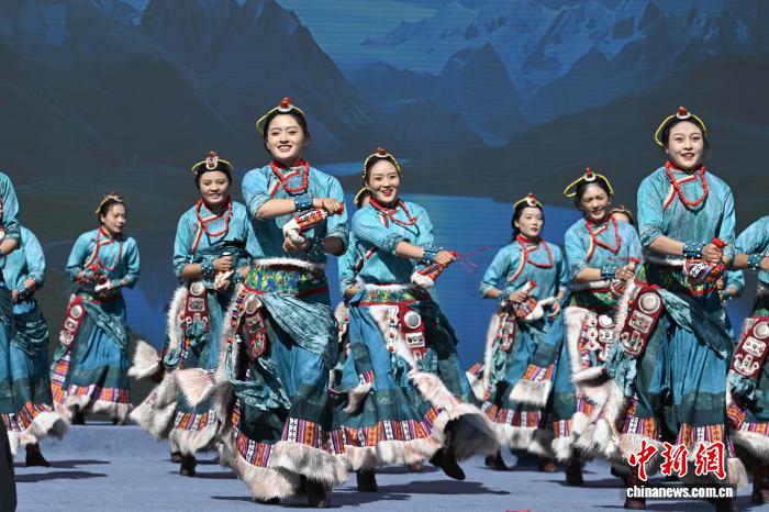圖為昌都市邊壩縣藝術(shù)團(tuán)表演女子群舞《糌粑揉出幸福情》。中新社記者 貢嘎來松 攝