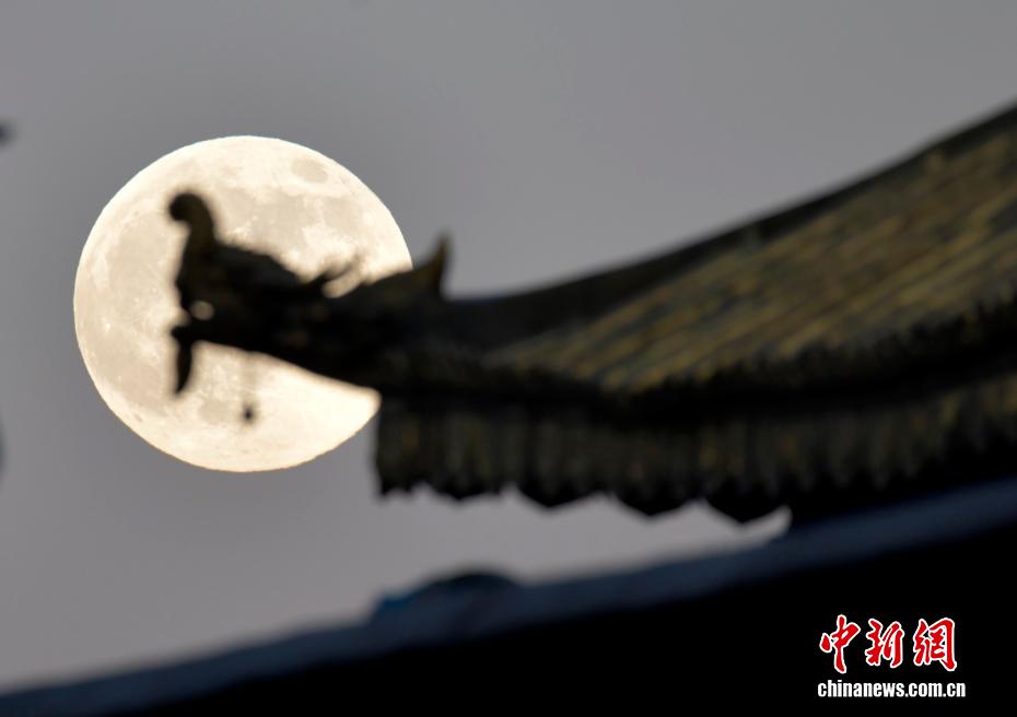 11月5日,西藏日喀則扎什倫布寺拍攝的“超級月亮”?!俺壴铝痢笔侵冈虑蜻\行到近地點時恰好達到滿月狀態(tài),此時月亮看起來比平時更大更亮。