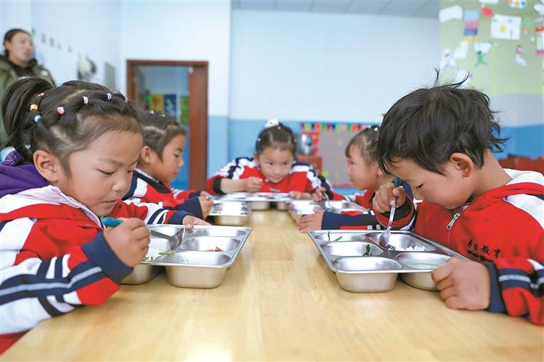 扎嘎新村的幼兒園里,孩子們正在吃營(yíng)養(yǎng)餐。通訊員 侯勇 嘉措 攝